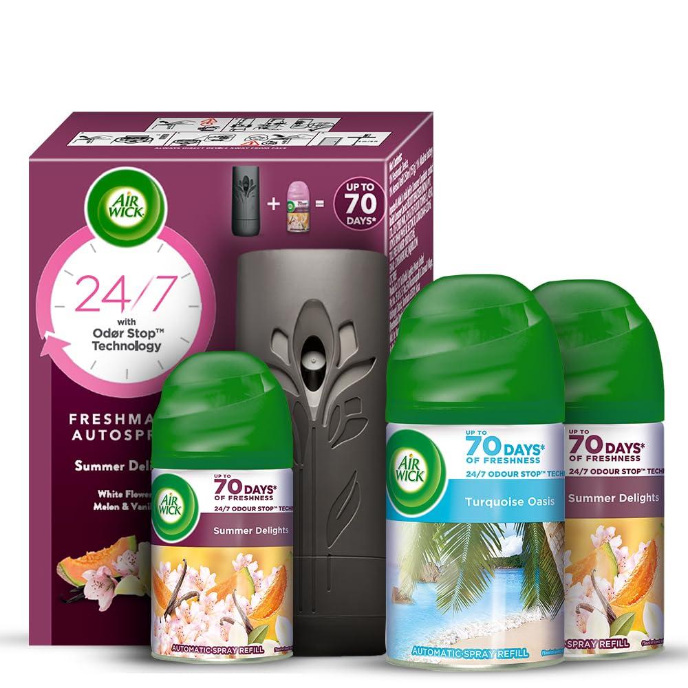 Air wick Freshmatic Refill Life Scents Turquoise Oasis - 250 Ml & Freshmatic Complete Kit - Automatic Air Freshener - Summer Delights (250 Ml) Combo,Spray  grocery