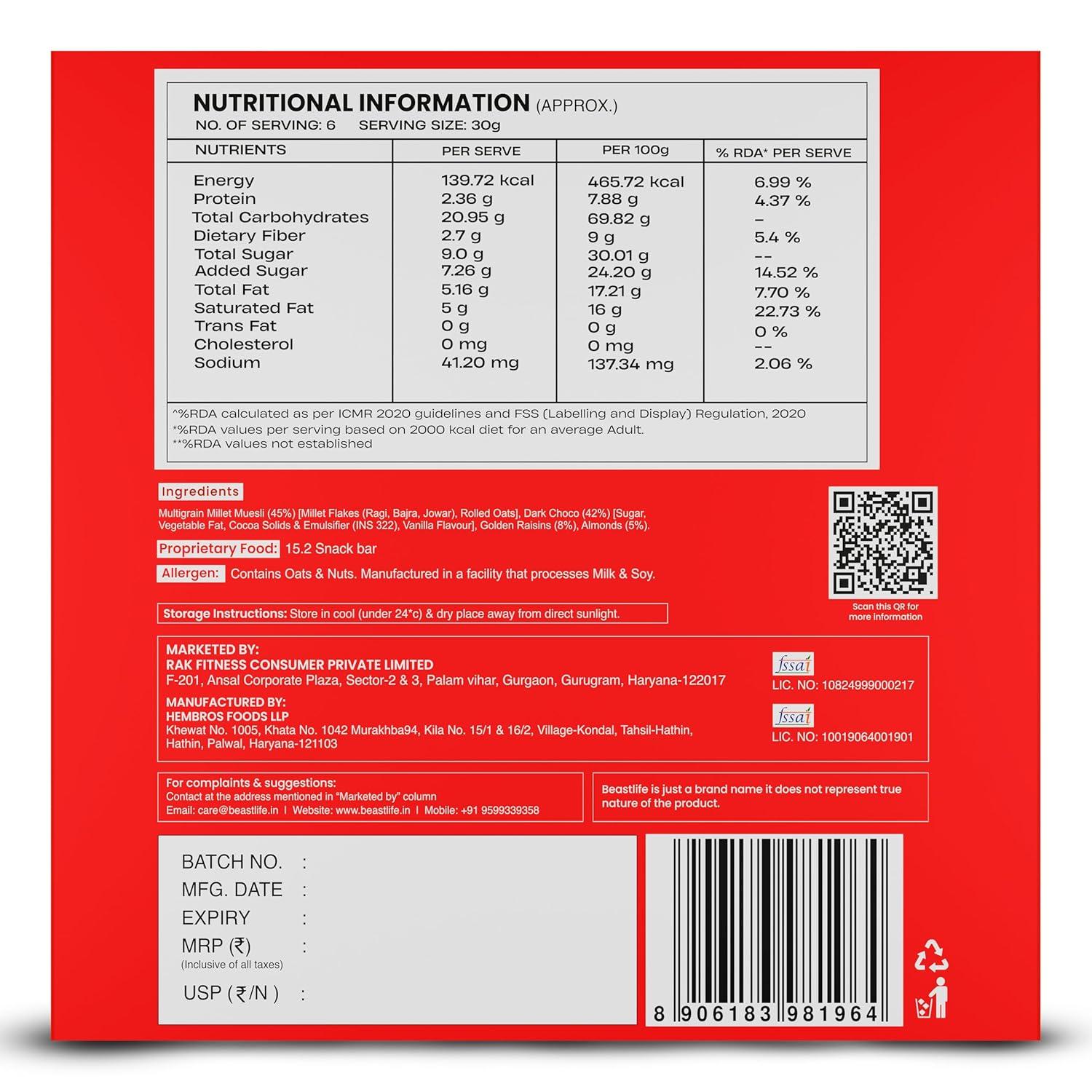 BeastLife Choco Almond Energy/Protein Bar | Multigrain Millet & Oats Energy Bar grocery