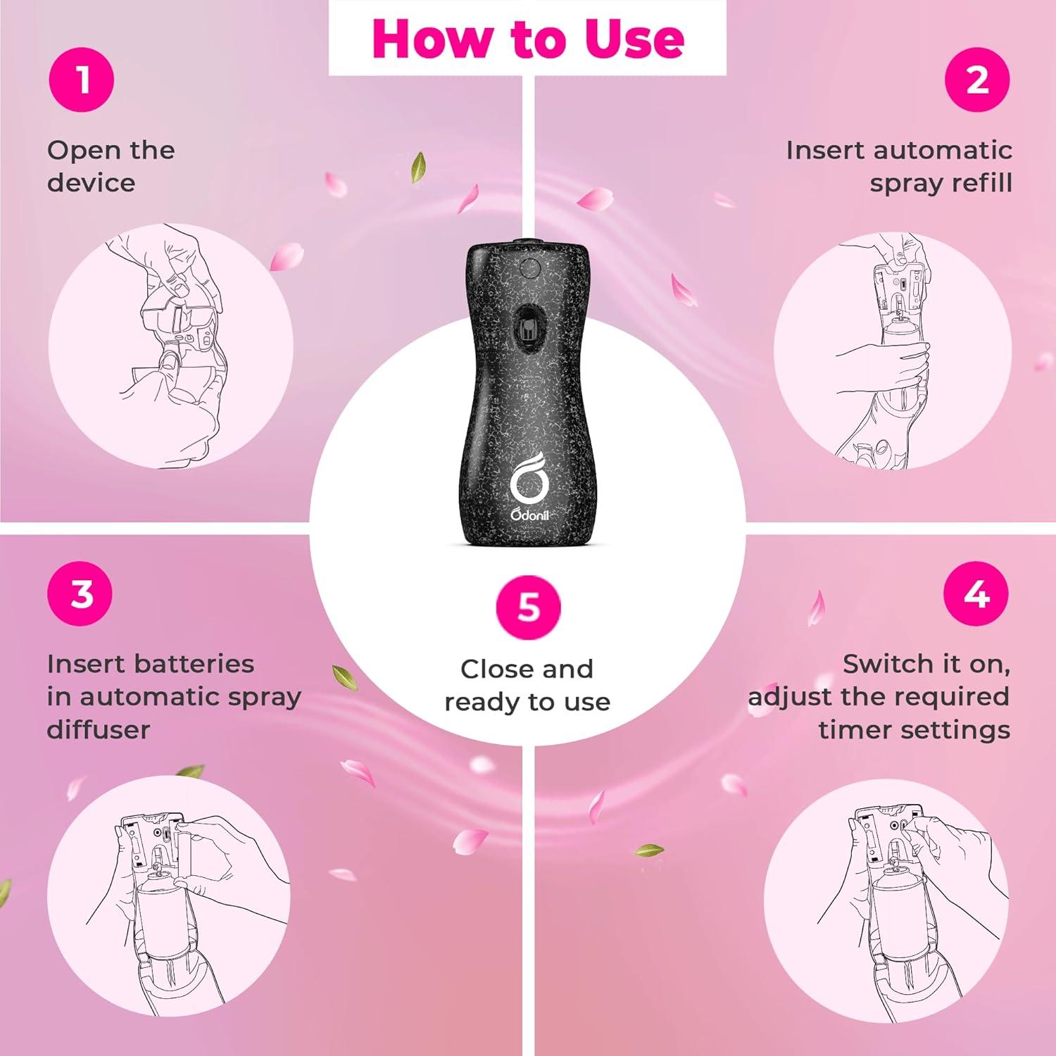 SET and FORGET: This Sprayer has 3 time scent/mist release settings. Easily set the dispenser to spray every 9, 18, or 36 minutes. Simple and clear. No difficult or confusing programming required.