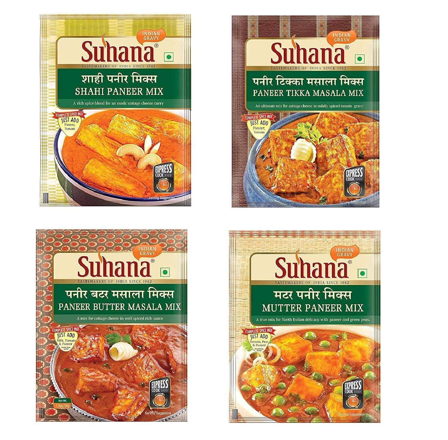 GROCERY  Suhana Paneer Combo Of 8 (Shahi Paneer 2 - Paneer Butter 2 -Paneer Tikka 2 -Mutter Paneer 2) Easy To Cook - 1 Count