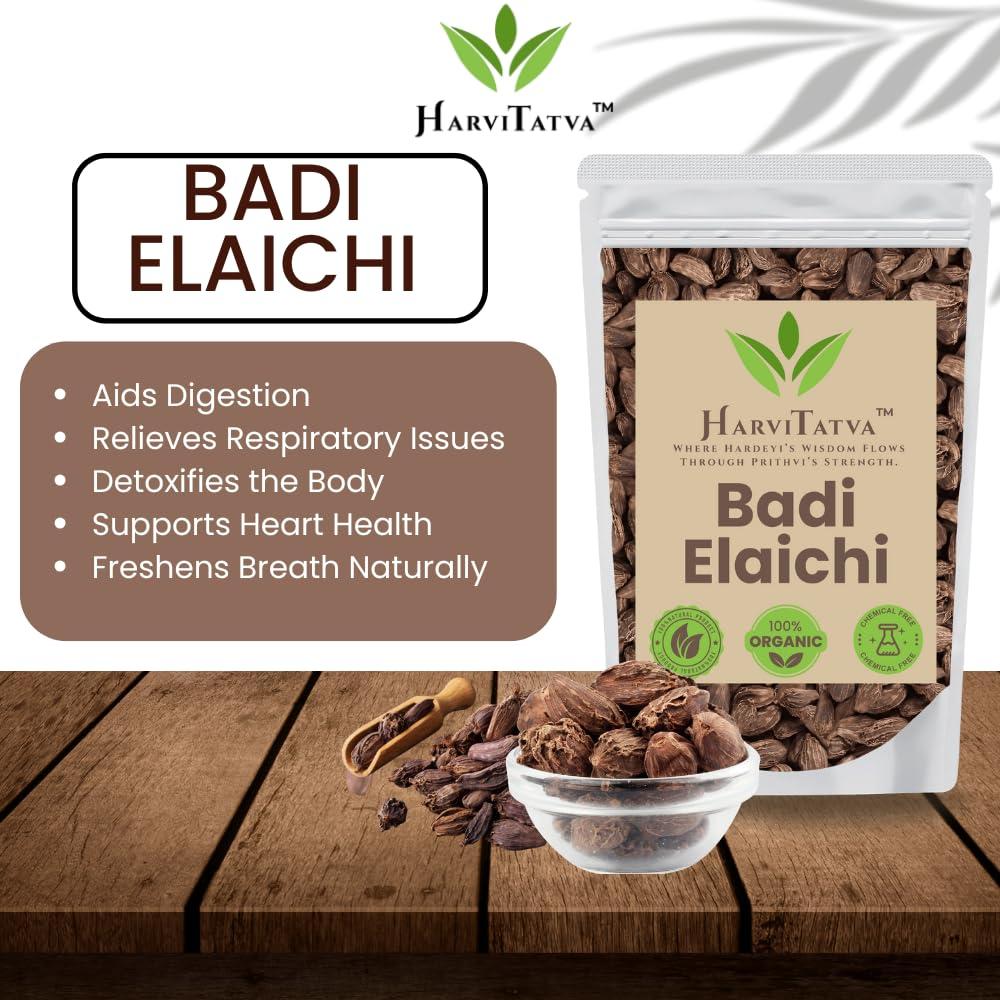 🌿 100% Natural & Organic – Sourced from trusted farms, HarviTatva Badi Elaichi is free from chemicals, pesticides, and additives.