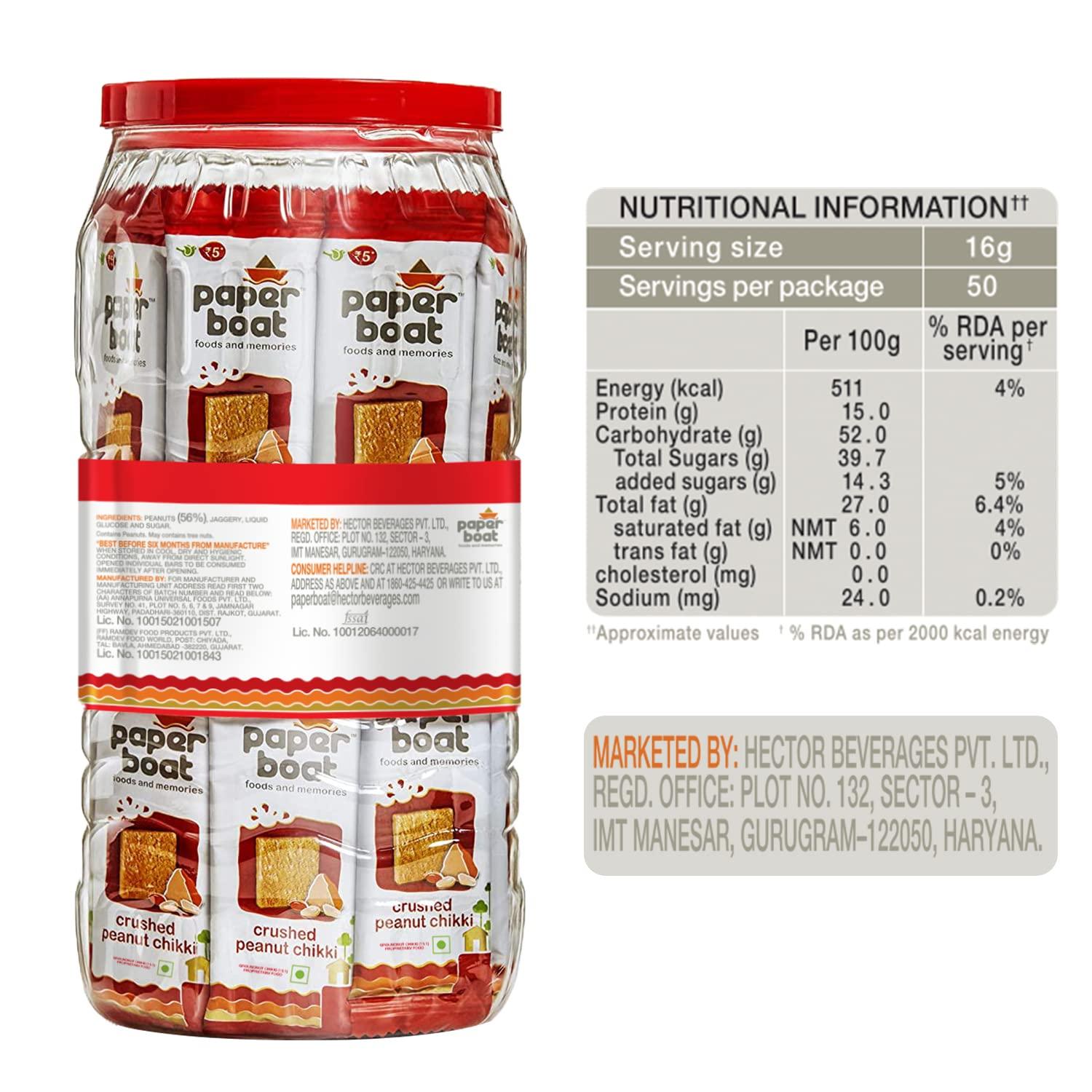 Paper Boat Crushed Peanut chikki is made of peanuts rich in dietary fiber, that means it helps aid a healthy and happy gut. Mongfali Chikki is a good source of energy, it keeps you full for a longer time so you can easily bid goodbye to those unnecessary junk cravings. Yes, we got your back