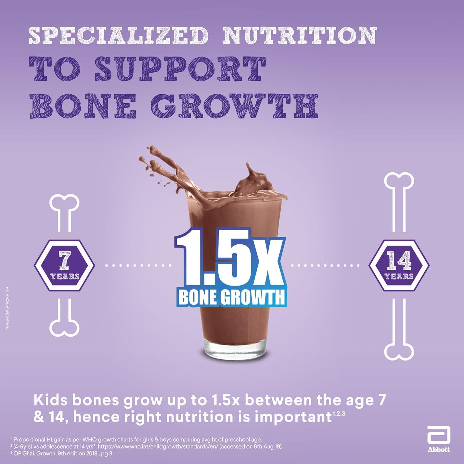 SUPPORTS HEIGHT GAIN: Bones can grow up to 1.5 times from 7 to 14 years. Pediasure 7 plus is specifically formulated with essential nutrients like Iron, Iodine, Protein, Calcium and Vitamin D to support this growth
