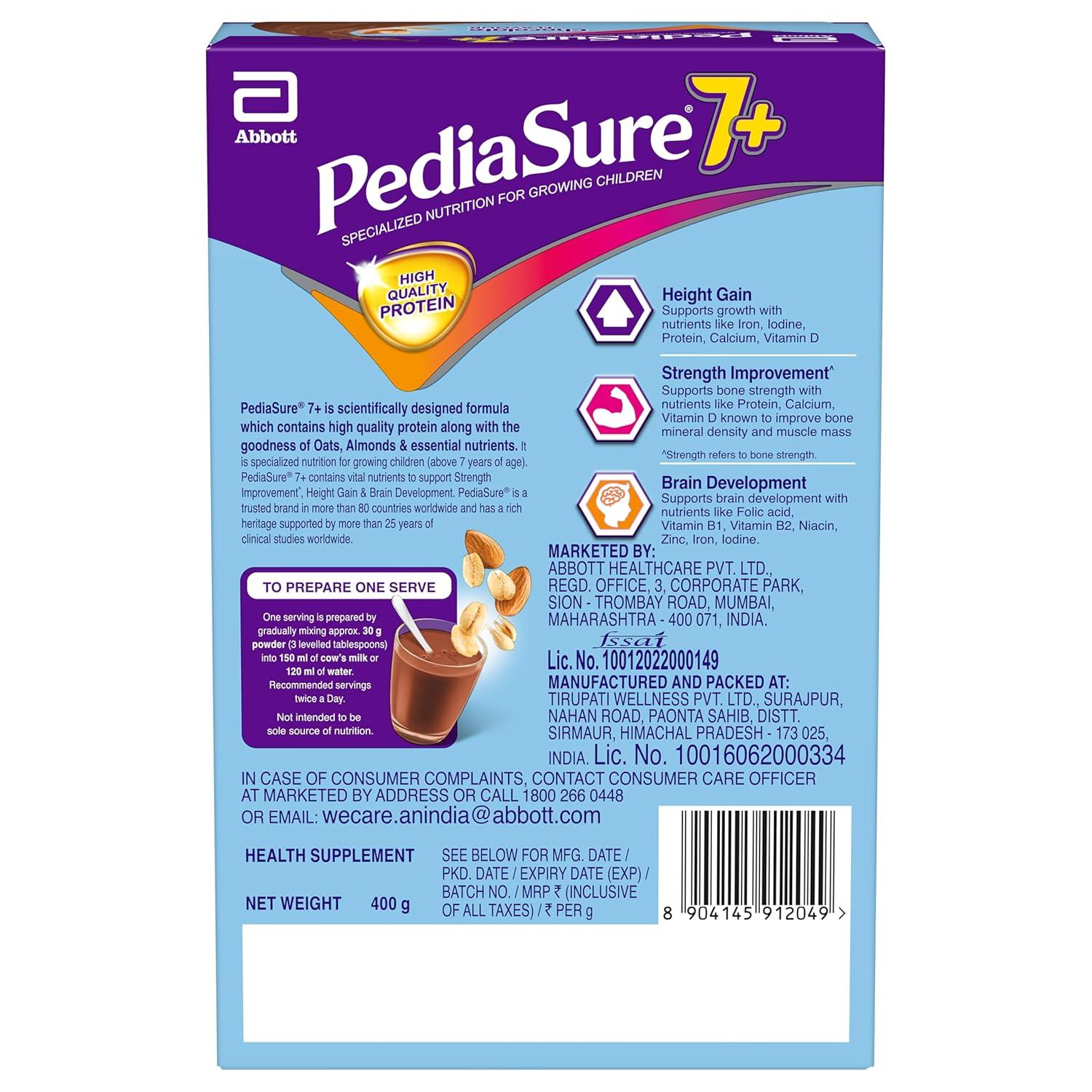 COMPLETE & BALANCED NUTRITION: Pediasure 7+ is a specialized nutritional drink that provides complete, balanced nutrition for growing children 7 years & above. Scientifically designed with various nutrients along with the goodness of Oats & almonds
