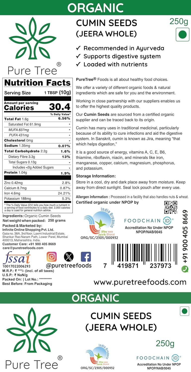 TRUSTED & TRACEABLE- Pure Tree Products Are Grown In Certified Organic Farms, Maintaining Highest Standards Are Certified With: India Organic, Foodchain Quality Certification Under NPOP/NAB/006.