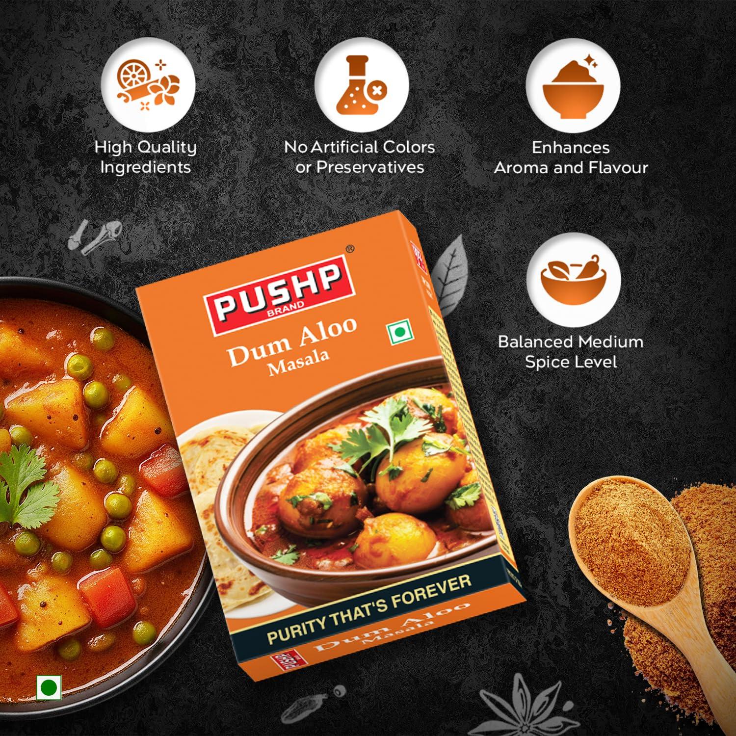 Authentic Taste: Made with a traditional recipe, Pushp Dum Aloo Masala delivers the classic, rich, and spicy flavor of Dum Aloo, just like your favorite Indian restaurants.