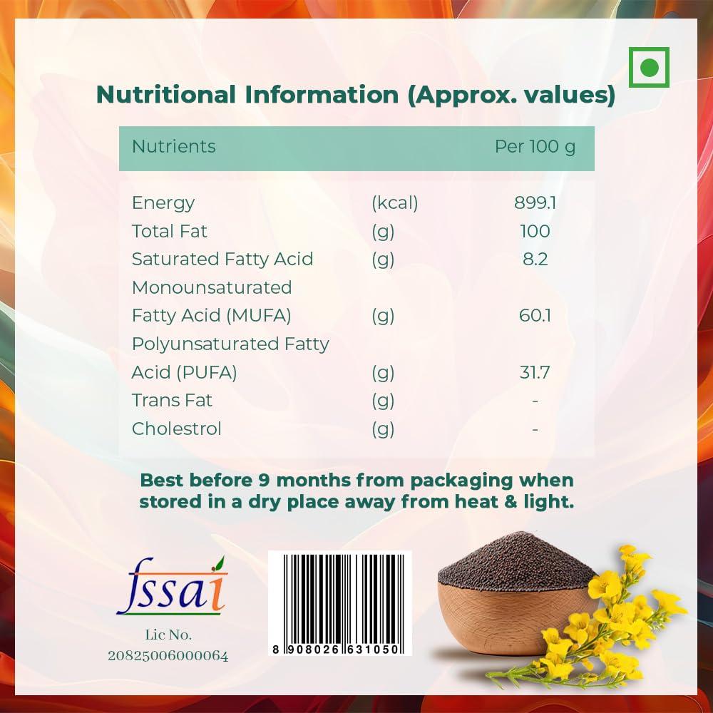| Speciality | Cholesterol Free, GMO Free, Preservatives Free, Tin packaging, Wood Pressed |