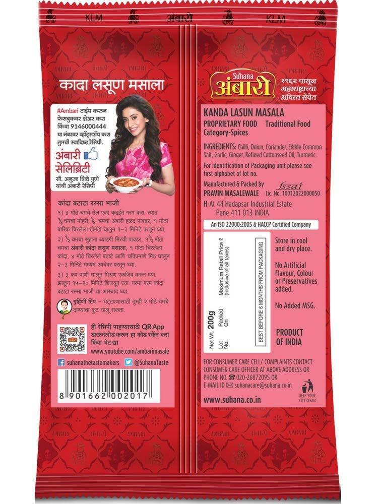 Make every meal memorable with the authentic taste of Suhana Ambari Kanda Lasun Masala.
