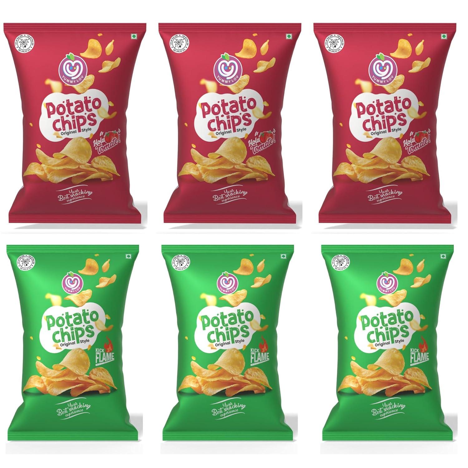 Yummylov® Ready-to-Eat Premium Kerala Potato Chips Combo Pack – Hola Tomato & Kick Flame Flavours | No Palm Oil | Healthy Crunchy Snack