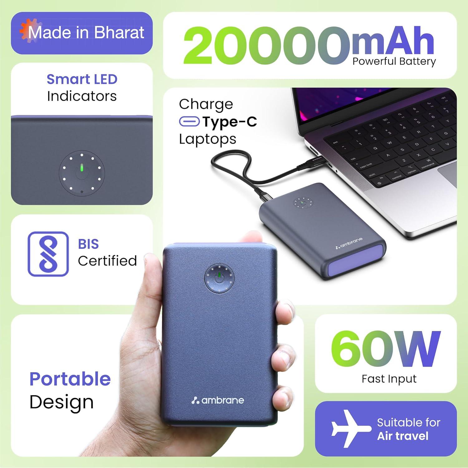 High Power Capacity: Boasting a massive 20000mAh capacity, the PowerLit Ultra Lite keeps your devices charged and ready whenever you need them.