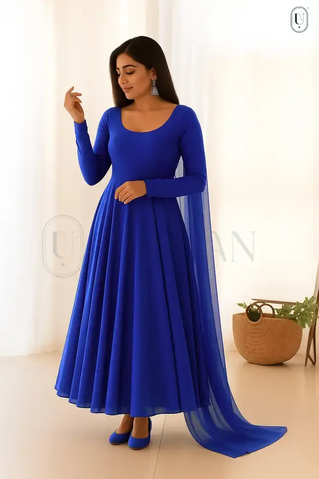 Color :Blue Color Code :Bluefabric :GeorgetteIdeal For :Womensize :M,L,XL,XXL RegularStyle Code :AnarkaliSet-101Type :Kurta and Dupatta Set