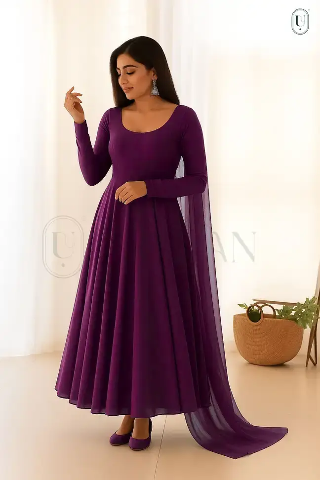 Color :Purple Color Code :Purplefabric :GeorgetteIdeal For :Womensize :M,L,XL,XXL RegularStyle Code :AnarkaliSet-101Type :Kurta and Dupatta Set