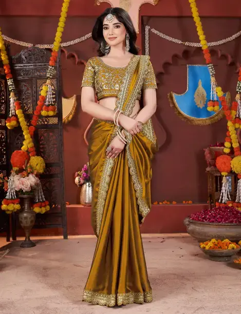 Trend :Solid saree with contrast border, Heavy Designer Look, Night Party, Occasional Sari/Party Sari, Festive Look