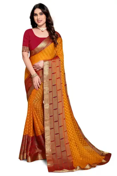 Trend : Solid saree with contrast border, Day Festive, Floral prints