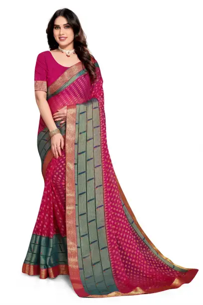 Trend : Solid saree with contrast border, Day Festive, Floral prints
