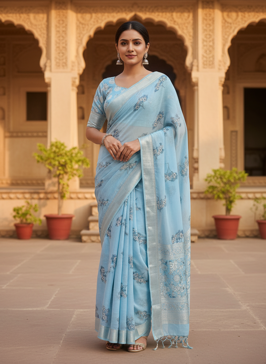 WOMEN 'S GEORGETTE PRINTED SAREE WITH UNSTITCHED BLOUSE