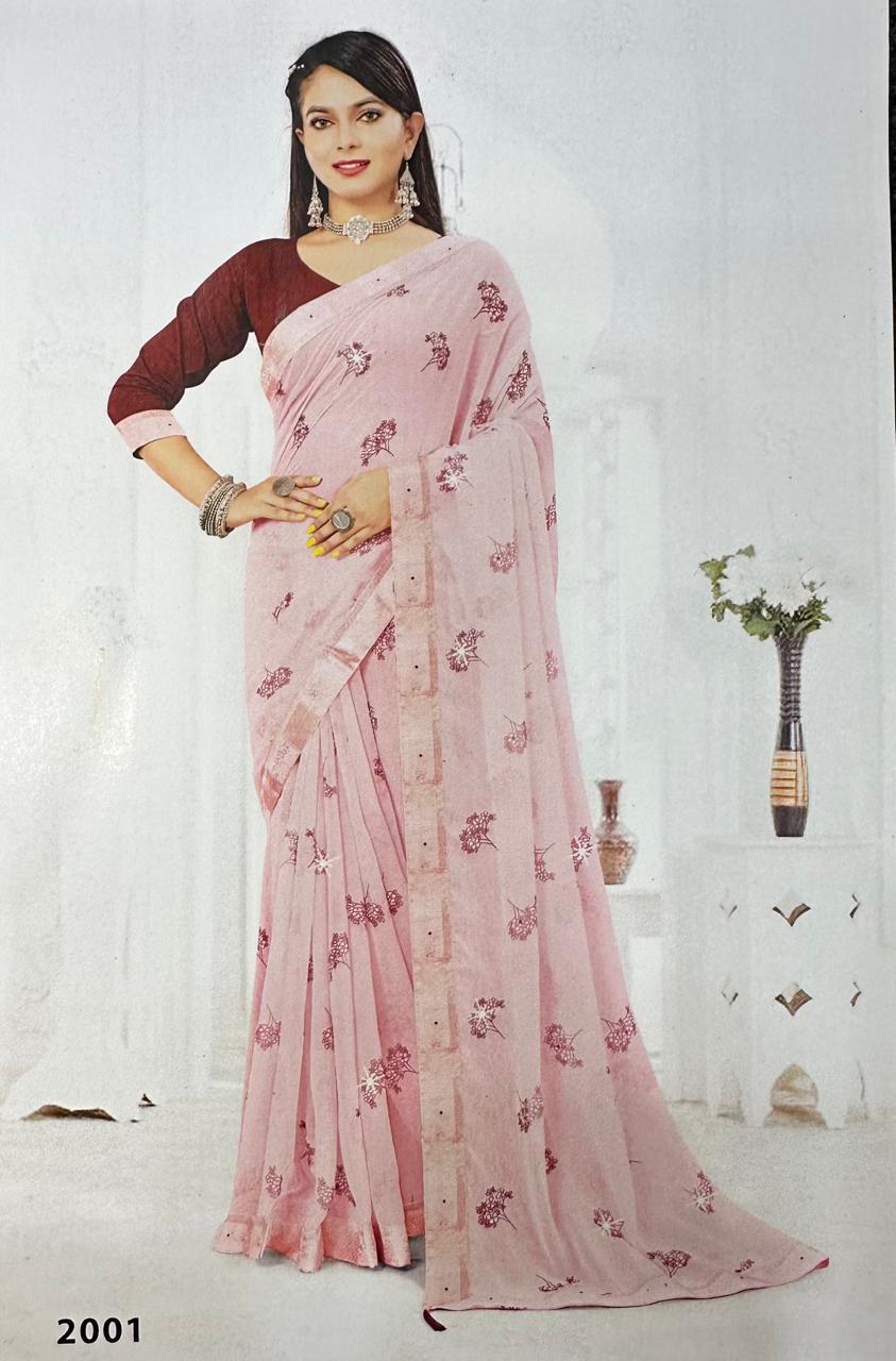 WOMEN 'S GEORGETTE SILK PRINTED SAREE WITH UNSTITCHED BLOUSE