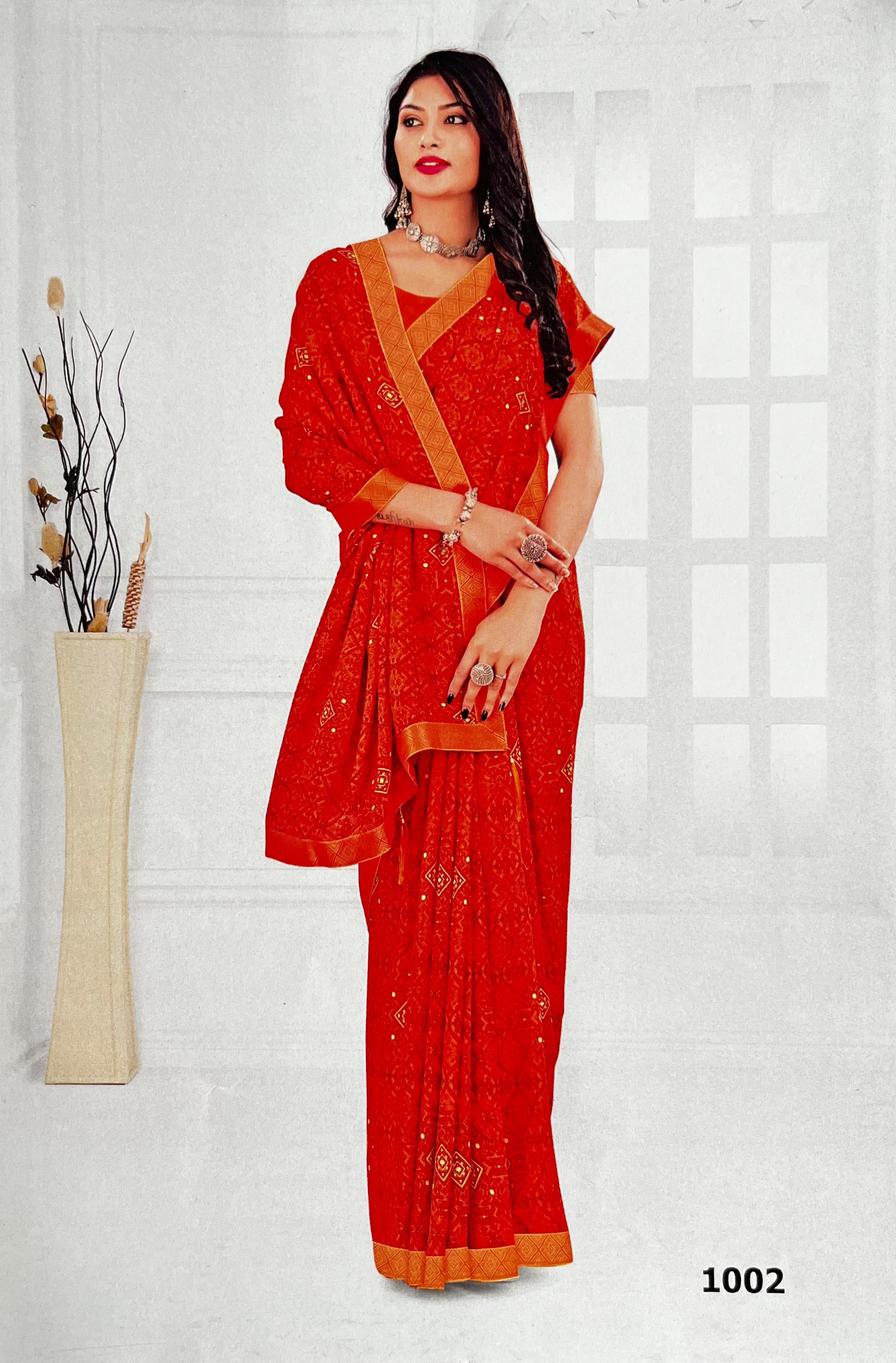 WOMEN 'S GEORGETTE SILK PRINTED SAREE WITH UNSTITCHED BLOUSE