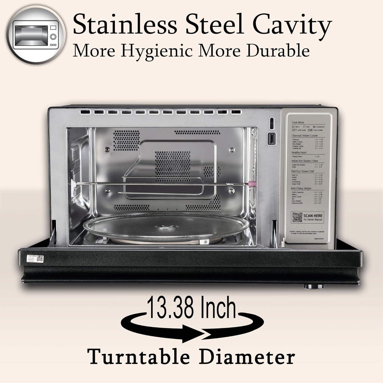Special Features: Scan to Cook Wi-Fi, Charcoal Lighting Heater - natural flavours and make your dish crunchy outside and juicy inside, 30 Heart Friendly Recipes, 360° Motorised Rotisserie- Bar-be-queing at home, Stainless Steel Cavity, Smart Diagnosis, Pasteurized Milk