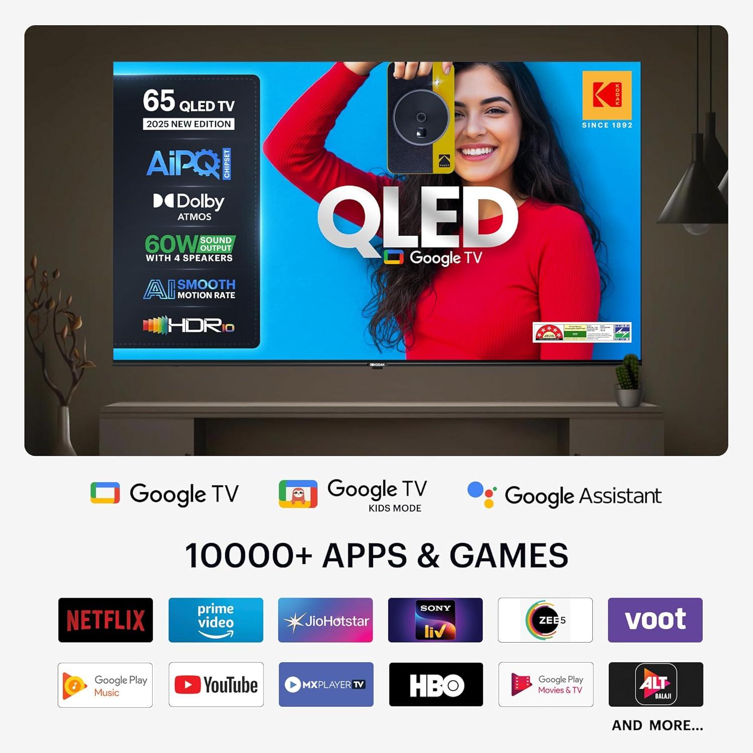 Smart TV Features: Google TV | In-Built WiFi | Screen Mirroring | 2GB RAM | 16GB ROM | Supported Apps: Netflix, Prime Video, YouTube, Zee5, etc. | Google Assistant| Energy Rating: 5 Star | Annual Energy Consumption: 175 kWh