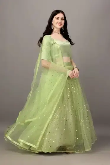 Color :Green Size :FreeStitching Type :Semi StitchedType :Lehenga CholiFabric Care :Dry Clean for the first wash, thereafter Hand WashSales package :1
