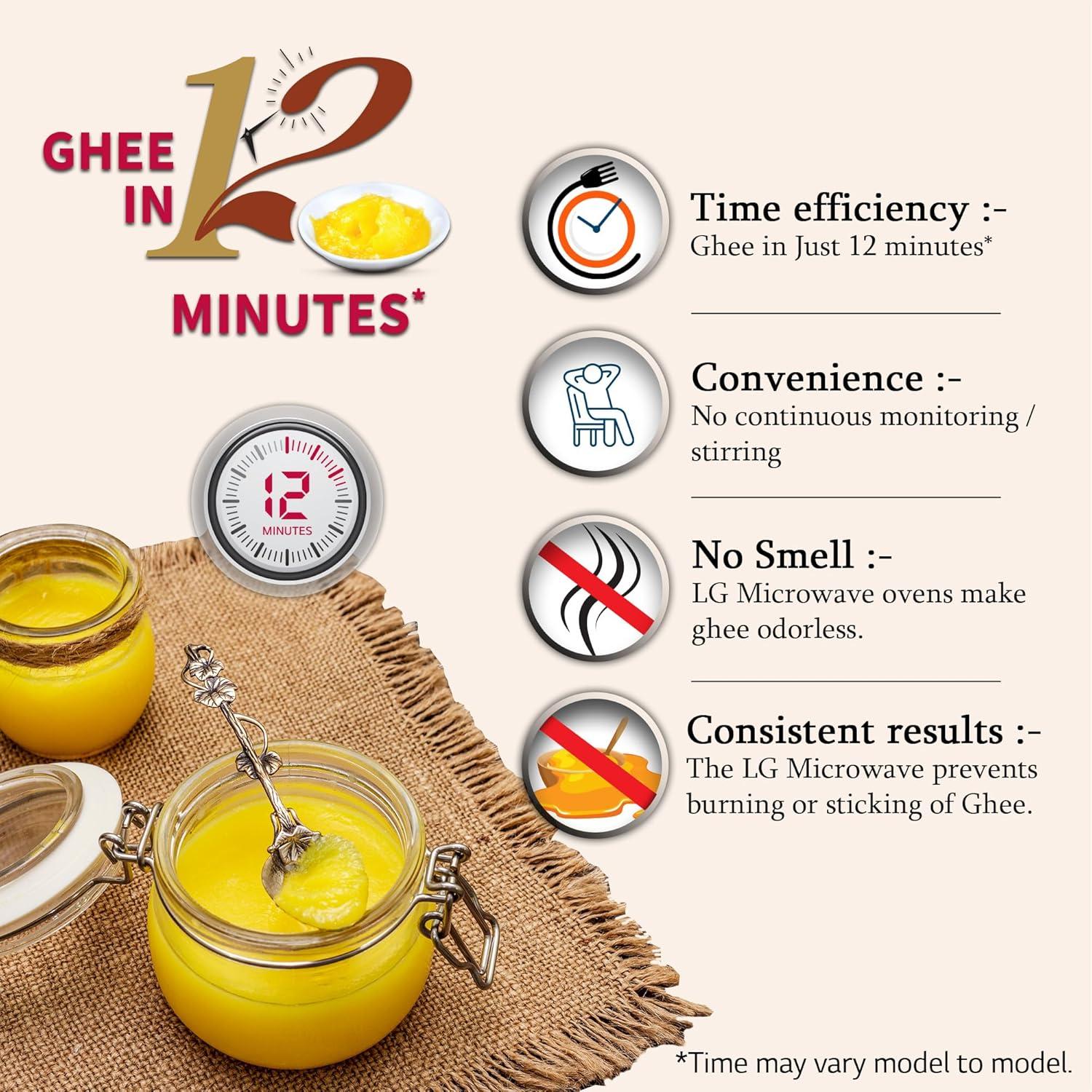 Special Features: Ghee in 12 minutes (time may vary model to model), Quartz Heater - Concealed Heating. Safer Cooking, Health Plus Menu, Stainless Steel Cavity - More Hygienic. More Durable, Cooking Completion Beeper, Child Lock, Programmable