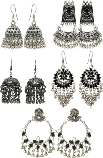 Brand :ZupitoEarring Set Type :Jhumki EarringTrend :Oxidised SilverOccasion :Party, Religious, Wedding & EngagementDesign :MinimalPiercing Required :YesNumber of Pairs :5