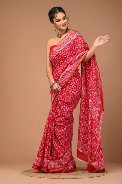 Other Details : Premium quality soft zari cotton mulmul vanaspati Ajrakh printed saree 6.5 mtrs with zari cotton blouse piece