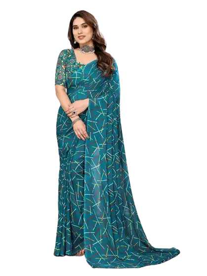 Other Detail :Georgette Daily Wear Blue Colored Striped, Printed Party Wear Saree With Printed Un-Stitched Blouse Piece