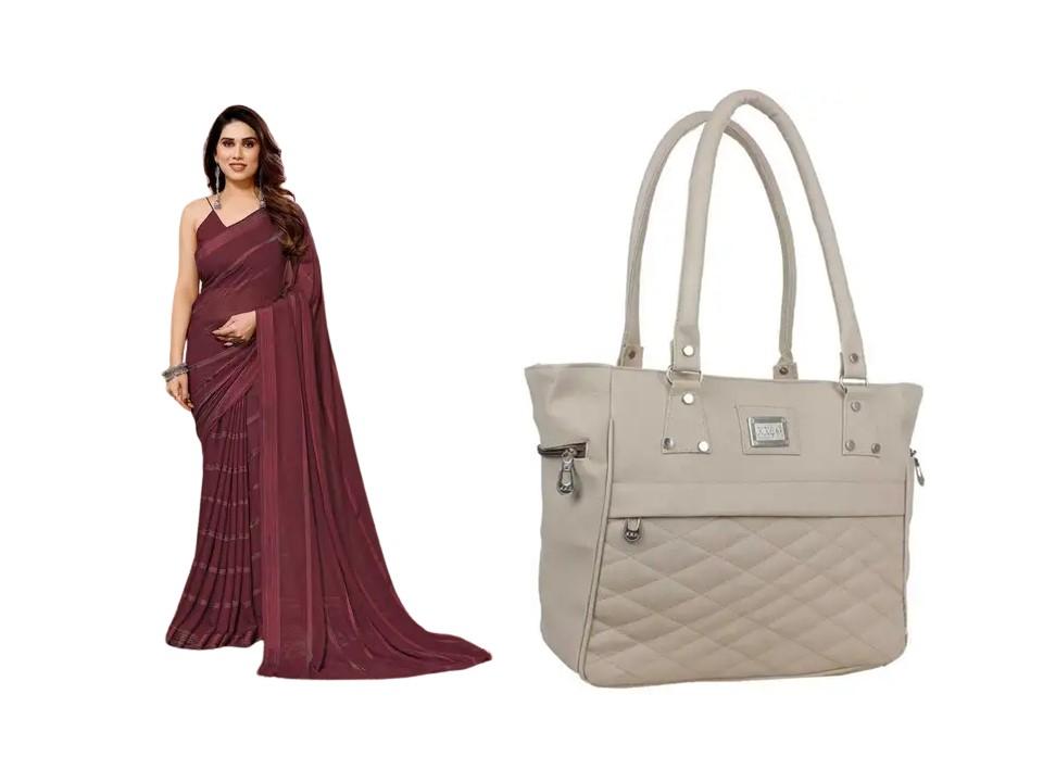 Other Details :Satin Fabric Made SilverStriped Patterned Work Party Wear Festive Wedding Saree