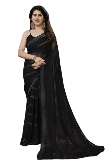 Other Details :Satin Fabric Made SilverStriped Patterned Work Party Wear Festive Wedding Saree