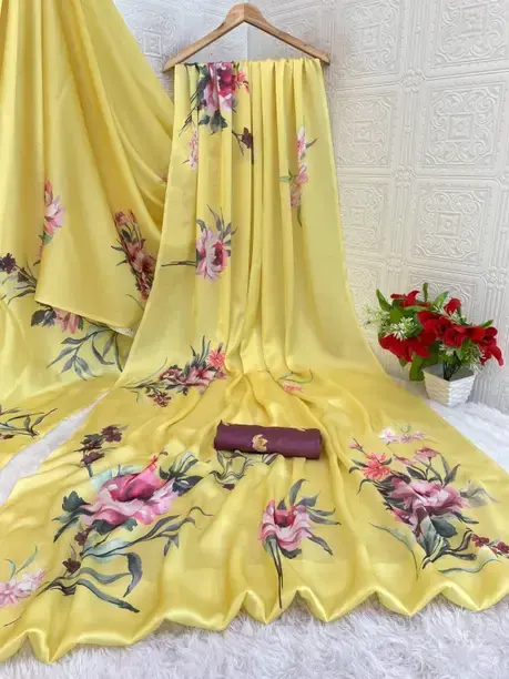 Style Code :Women's Designer & Printed Satin Georgette Saree with Semi-stitched Blouse Piece