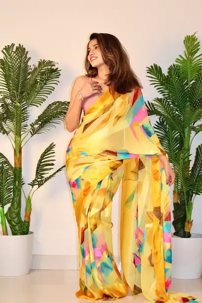 Other Details :This beautiful saree's is a perfect addition to your wardrobe if you're looking for an elegant and comfortable outfit for festive or party occasions. The saree is made of high-quality Geogette & Satin fabric, which gives it a rich and luxurious feel. It features a digital print abstract pattern that adds a touch of elegance and sophistication to the overall look. The saree comes with an 0.8-meter blouse piece, which allows you to customize the blouse design according to your preferences. The saree has a length of 5.5 meters, making it suitable for women of different heights and body types. The saree is perfect for wear to weddings, parties, and other festive occasions. It is recommended to machine or handwash the saree to ensure its longevity. Wear this digital printed saree to any party or festive occasion, and you are sure to make a statement with your elegant and sophisticated style.