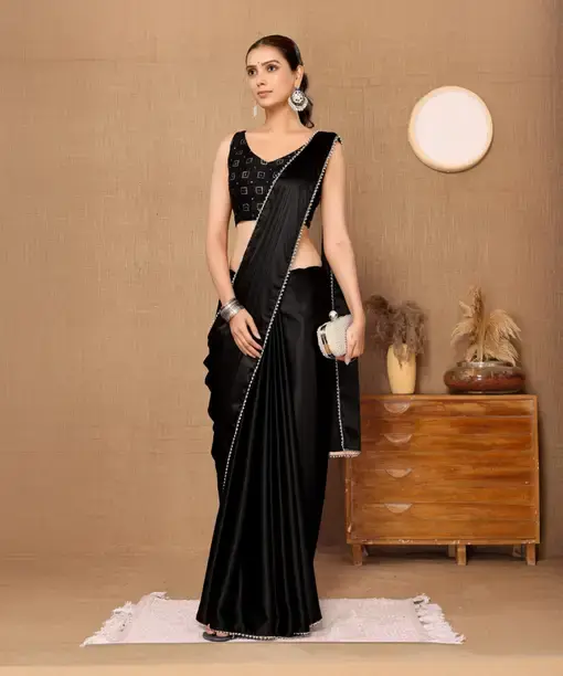 Construction Type :Satin Solid Black Color Saree With Blouse