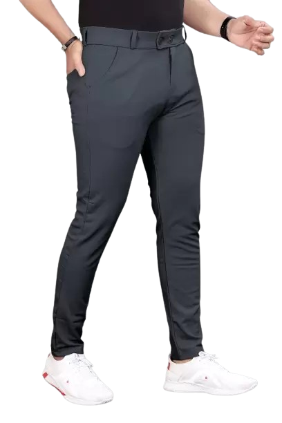 Men Slim Fit Grey Lycra Blend Trousers