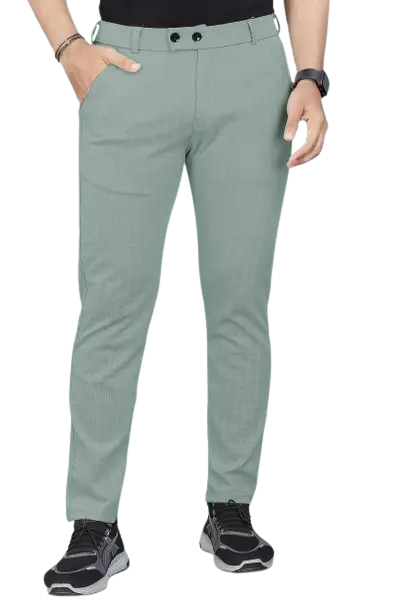 Men Regular Fit Light Green Cotton Blend Trousers