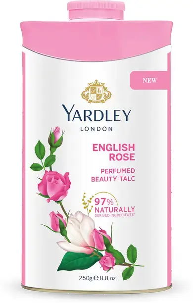 Brand : Yardley London Model Name : English Rose Perfumed Talcum Powder for Women Quantity : 250 g Ideal For : Women Organic : No Maximum Shelf Life : 36 Months Ingredient Type : Synthetic Container Type : Tin Net Quantity : 250 g Manufacturing Process : NA