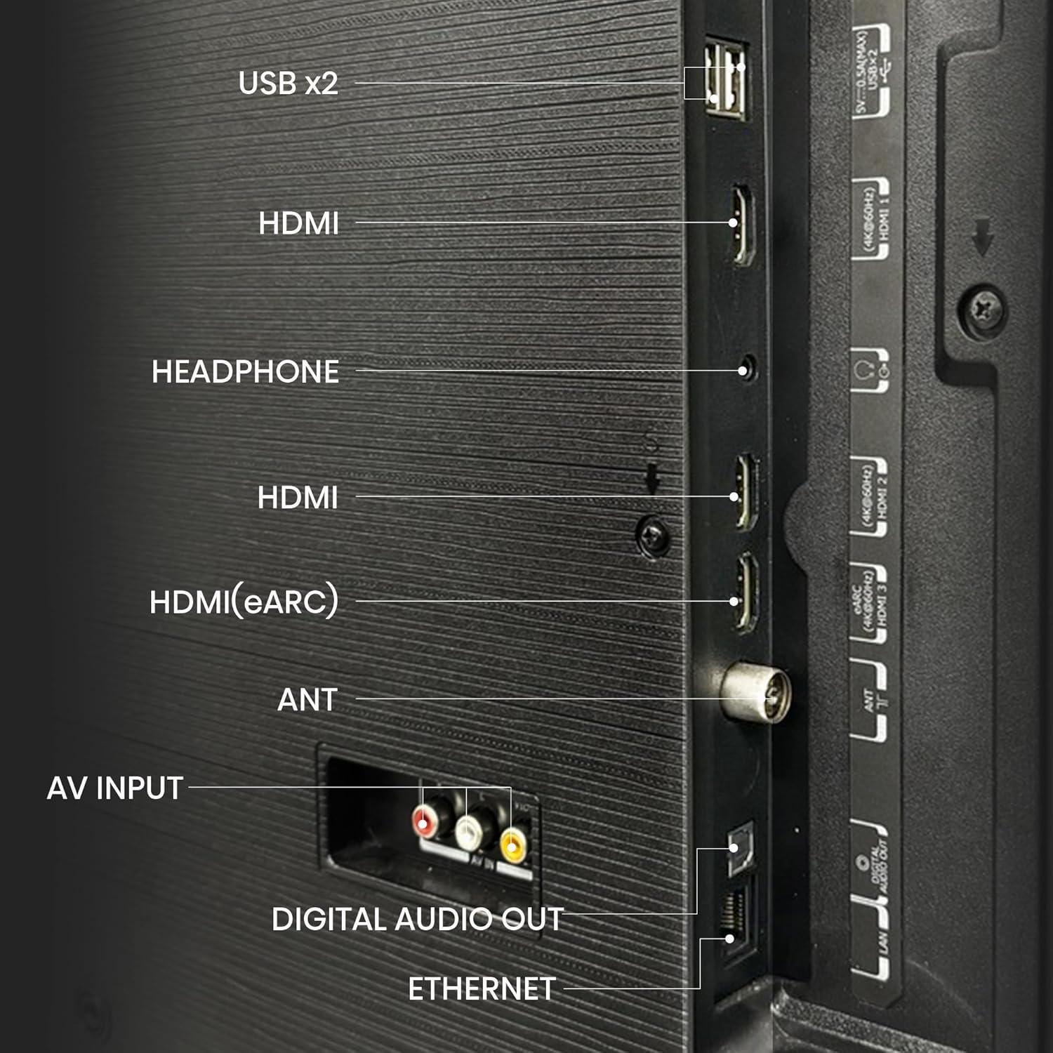 Connectivity: 2 HDMI ports to connect set top box, Blu-Ray players, gaming console | 2 USB ports to connect hard drives and other USB devices | 3.5mm to connect your headphones
