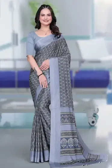 K 5 FASHION Printed Daily Wear Crepe Saree (Grey)