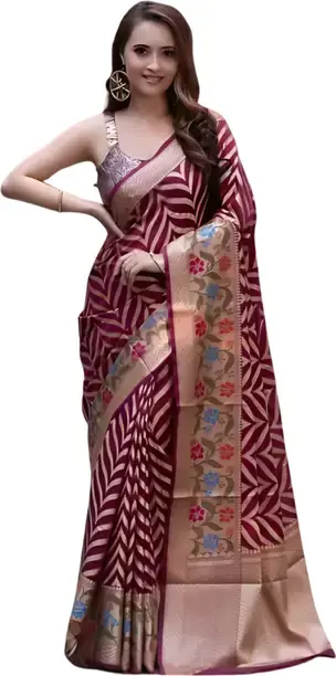 Style Code : WOMEN'S SOFT BANARASHI SILK STRIPPED PATTERN SAREE