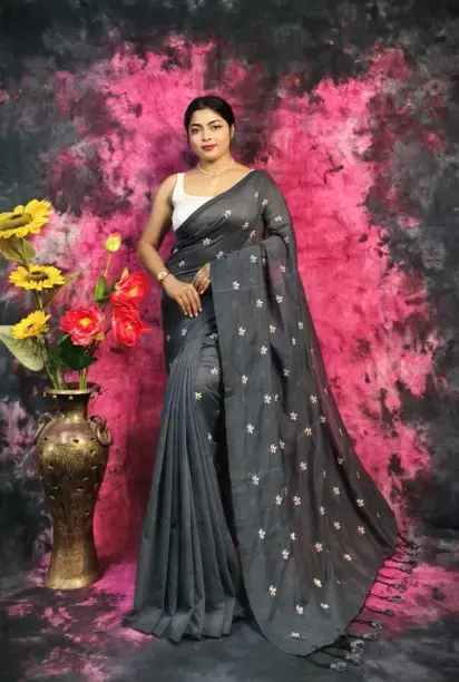 Printed Handloom Khadi Saree (Grey)