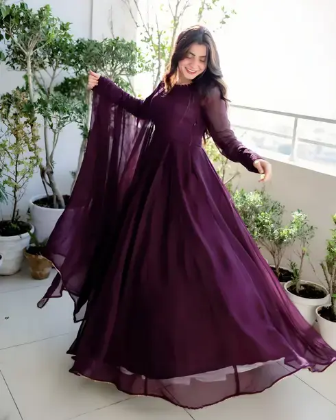 Solid Georgette Stitched Anarkali Gown (Purple)