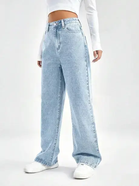 Women Boot-Leg High Rise Light Blue Jeans