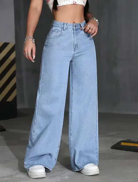 Women Loose Fit High Rise Light Blue Jeans