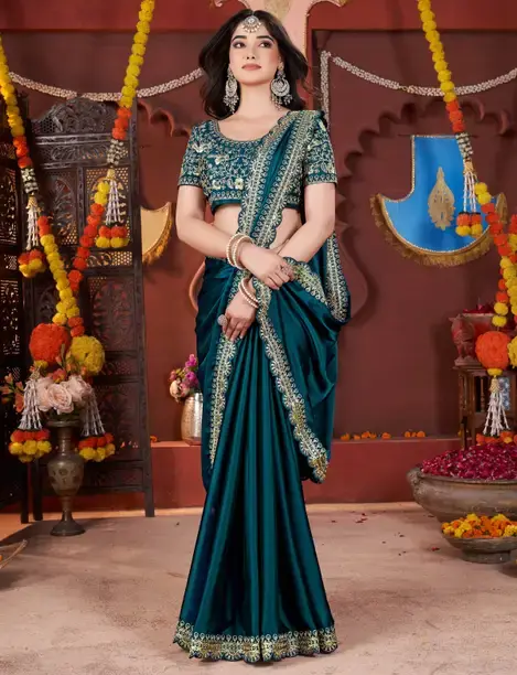 Trend :Solid saree with contrast border, Heavy Designer Look, Night Party, Occasional Sari/Party Sari, Festive Look
