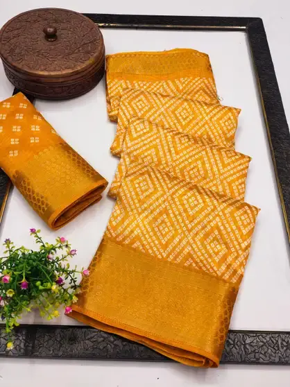 Name : Printed Bandhani Cotton Silk Saree (Yellow)