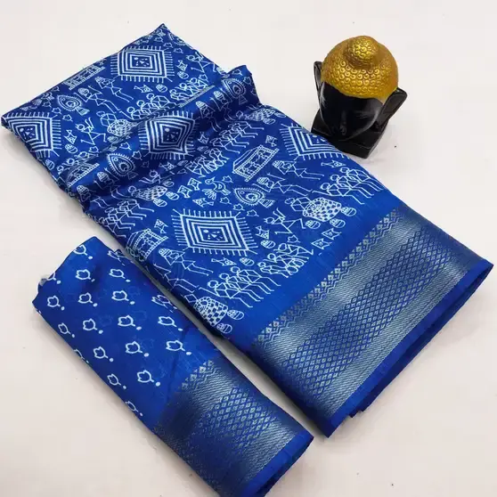 Name : Printed Bandhani Cotton Silk Saree (Blue)