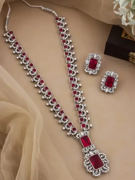 Brand :hetvicart Base Material :Alloy Color :Red Type :Earring & Necklace Set Ideal For :Women Net Quantity :1 Brand Color :Pink Maang Tikka :No Trend :American Diamond Jewellery Sales Package :1 necklace, 1 pair of earring Occasion :Wedding & Engagement