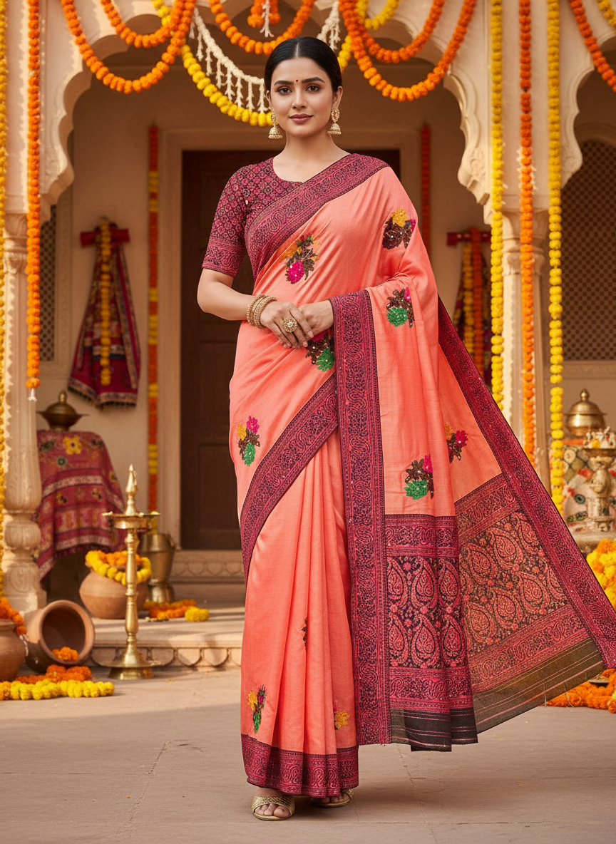 WOMEN 'S GEORGETTE PRINTED SAREE WITH UNSTITCHED BLOUSE