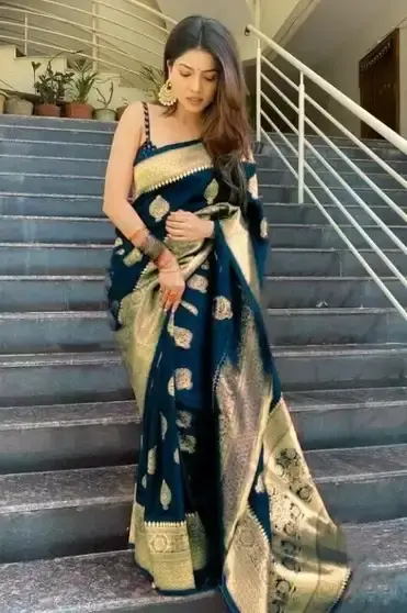 Name : Woven Kanjivaram Pure Silk Saree (Blue) Pattern : Woven Pack of : 1 Occasion : Party & Festive, Wedding & Festive Fabric Care : Dry Clean Only Fabric : Pure Silk Type : Kanjivaram Blouse Piece : Unstitched Sari Style : Regular Sari Net Quantity : 1